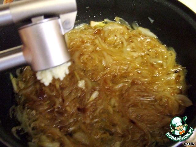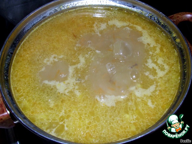 9. В последнюю очередь добавляем приготовленный лук в бульон и оставляем на маленьком огне еще 5минут.