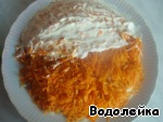Морковный слой смазываем майонезом. -