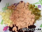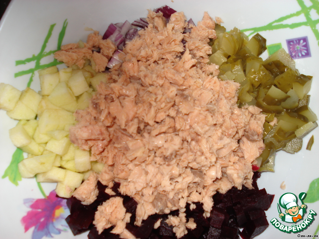Ингредиенты для «Винегрет с консервированной горбушей»: