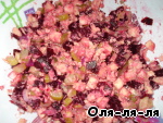 Всё перемешиваем, заправляем салат хреном. Солим, если это необходимо (я не солю). В последнюю очередь добавляем масло.
