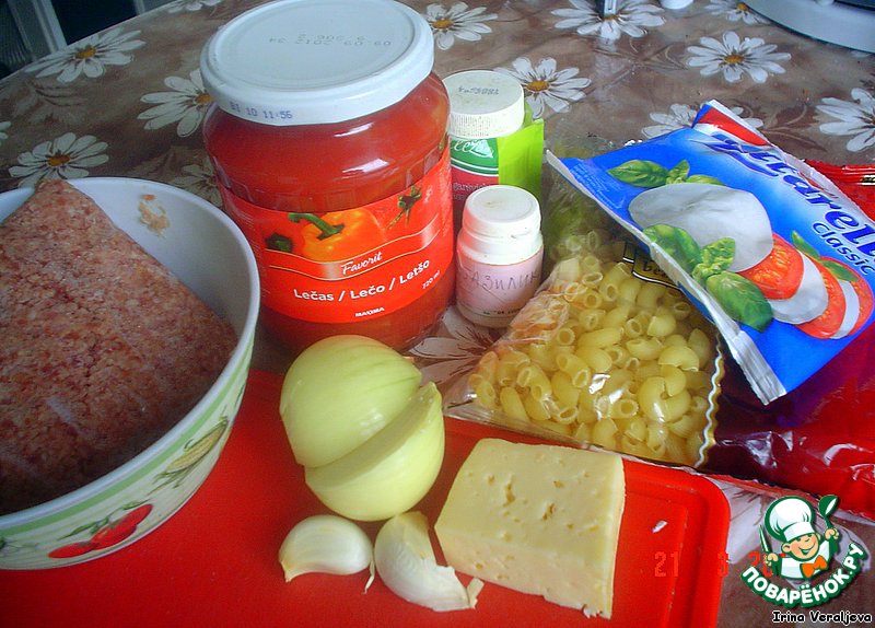 Рецепт макаронной запеканки с фаршем и лечо, составленный из нескольких рецептов коллег-поварят. В рецепте ничего такого особенного, но я его запекала в аэрогриле - мой опыт.