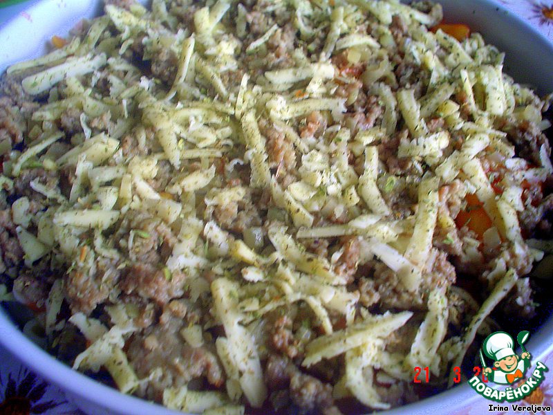 В чуть смазанную раст.маслом форму слоями выложим: