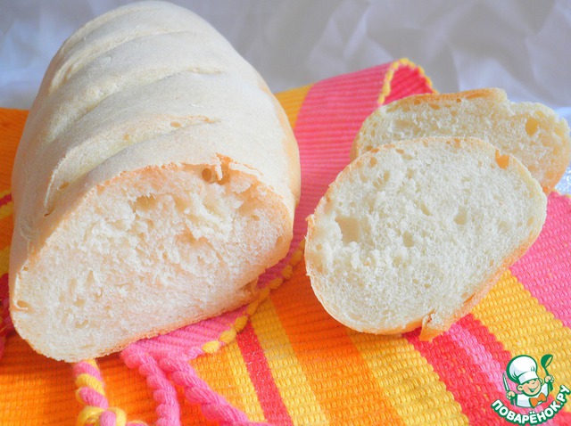 Выпекать первые 7 минут на высокой температуре, обрызгав еще пару раз духовку водой, затем уменьшить температуру до 210° С и выпекать в течении 25 минут.