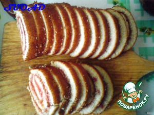 Рулет нарезать кусочками (у меня был со вкусом лесных ягод)