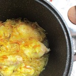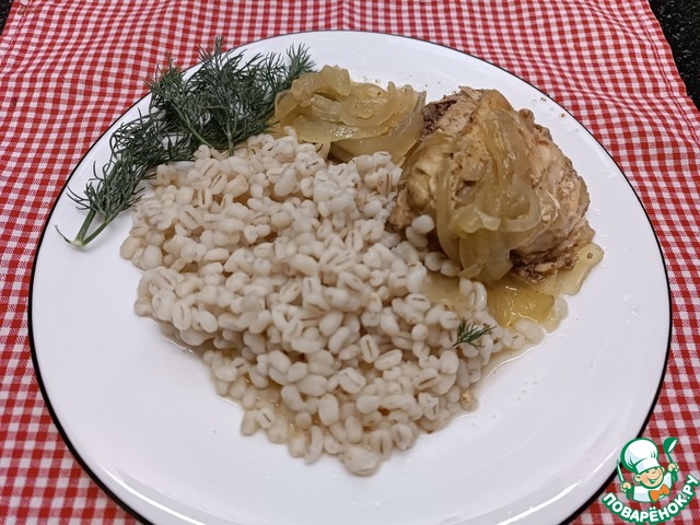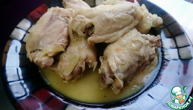 Слова автора. Для этого блюда нужны: крупные куски курицы и крупно нарезанный лук (на 500 гр мяса - 2 луковицы), чуть масла растительного или сливочного для смазки дна кастрюли[i] (добавляла оба вида масла),[/i],