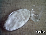 Положим на тарелку, польем водой и еще раз разровняем, уже по форме тарелки.