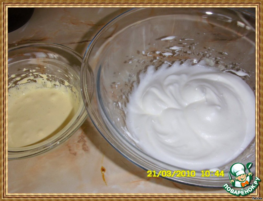 Аккуратно соединить белки с желтками.