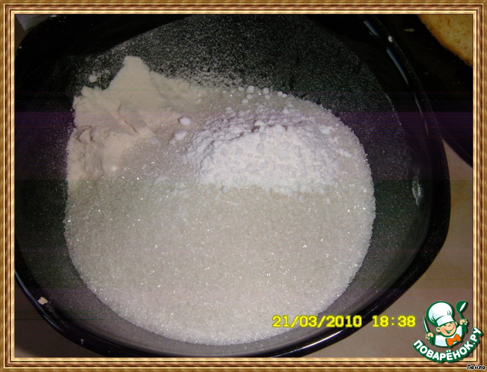 - Сахар (для бисквита-2ст.л. с горкой, для сырного суфле-120 г ) — 145-150 г