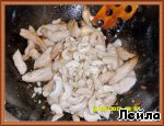 Добавить к обжаренной курице орехи и обжариваем в течение нескольких минут.