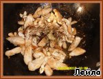 Нагреваем в отдельной сковороде 1 ст. л. арахисового[i] (заменила на ореховое+растит.)[/i] масла и обжариваем [i] (на средне-сильном огне)[/i] курицу до светло-коричневого цвета, минут 5-7.