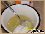 Как только сливки с лимонным соком закипят, перелить половину объема в посуду со взбитыми желтками, перемешать и вылить всю массу обратно в сотейник.