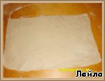 И сложить их смазанными сторонами друг к другу. Обрезать края (края, как видите обрезала сразу после раскатки, фото верхнее).