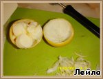 Полусферы из лайма очистить от пленок, положить крем и запечь в духовке в течение пяти минут при 250 градусах.