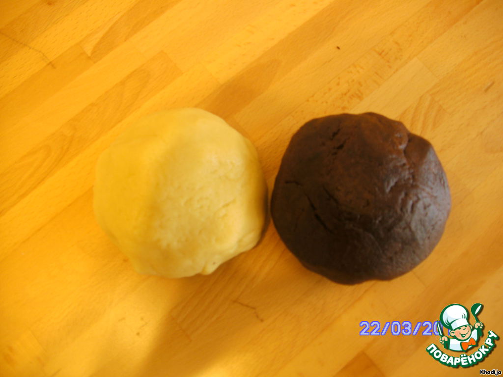 Делим тесто на 2 части и во 2-ю добавляем какао.