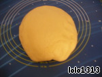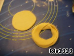 Берём небольшой кусок (из расчёта на 4 булочки) и раскатываем в лепёшку.