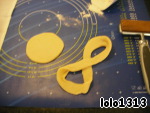 Закручиваем рулетик, начиная с округлой части, доходя до "язычка" (там, где мы сделали сечение). А "язычок" завязываем узелком, сам рулетик - "улиткой".