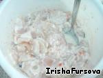 Филе рыбы (в моем случае - щёчки судака) промываем, отжимаем и маринуем на пару часов в специях для рыбы с майонезом