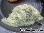 Мелко-мелко режем лук и обжариваем его на растительном масле до прозрачности. В конце жарки я добавляю мелко порезанный укроп. Даём полностью остыть!