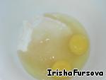 Сахар перемешиваем с яйцами, добавляем майонез и хорошенько вымешиваем, затем добавляем гашёную соду