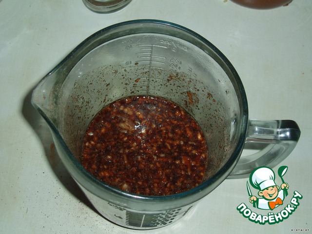 Приготовить маринад: в соевый соус выдавить 2 зубчика чеснока, добавить перец и мед. Перемешать до полного растворения меда.