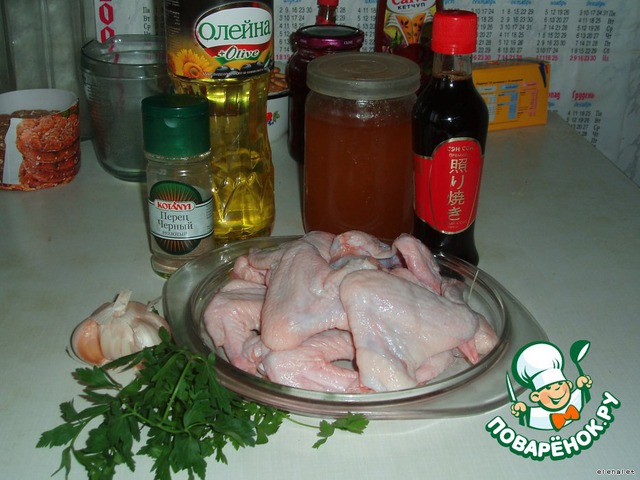 Ингредиенты для «Куриные крылышки в соевом соусе»: