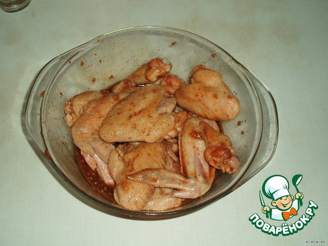 Замариновать крылышки этим маринадом и оставить на 10 минут