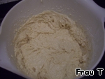 Смешать муку, крахмал и разрыхлитель, просеять в тесто.