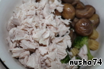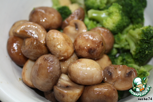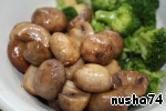 Шампиньоны обжарить минут 5-10 (если шляпки маленькие, использовать целиком, крупные порезать пополам). |