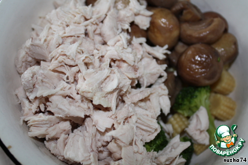 - Кукуруза (маринованная в початках (можно заменить маринованным огурцом)) — 200 г