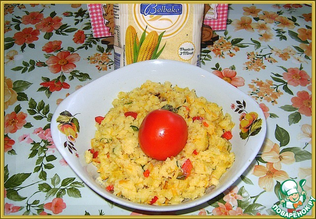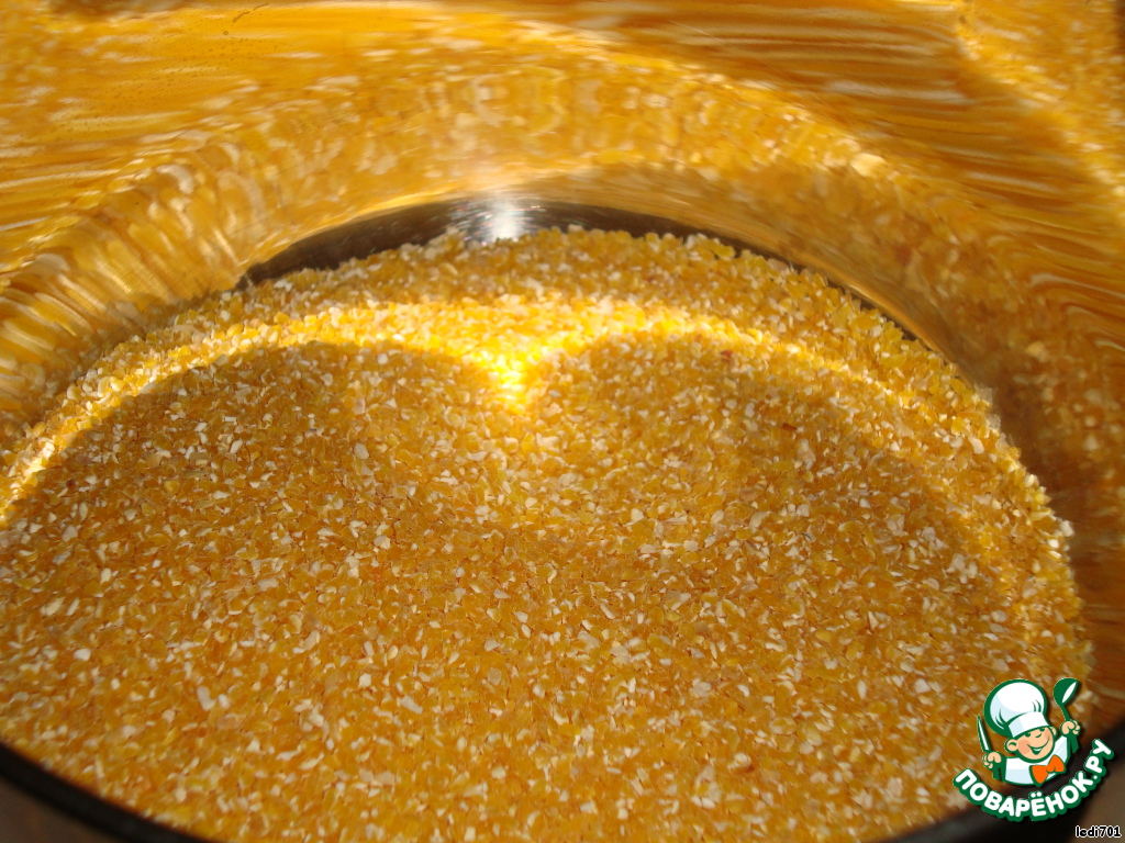1 стакан кукурузной крупы высыпать в кастрюлю, залить 3 ст. воды, посолить и варить на медленном огне до приготовления.