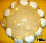 Вернёмся к первому ряду приготовления торта. Медленно выложить всю массу крема из печенья на зефир (печенье, молоко, желатин)