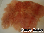 Куриную грудку отбить, посолить, добавить специи, автор предлагает добавить майоран (у меня такого нет)