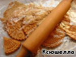 Для начала сделаем основу. Печенье частями укладываем в прочный полиэтиленовый пакет и скалкой измельчаем в крошку.