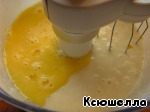 Добавляем взболтанные вилочкой желтки и соль. Взбиваем до легкого загустения массы.