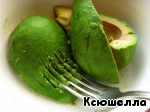 Авокадо разрезаем пополам, освобождаем от косточки и кожицы и разминаем мякоть вилкой до состояния пюре.