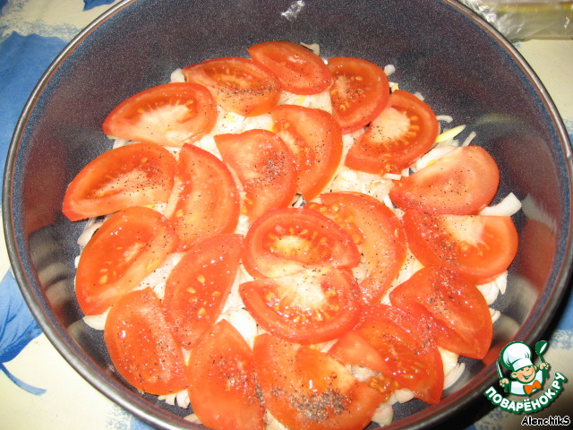 Слой помидора. Опять слегка присаливаем, перчим.