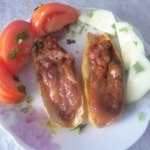 Ну, вот, наконец-то меня пустили к компу и я могу выставить обещанный вчера второй из двух обожаемых моим семейством рецепт из кабачков. Конечно, кто-нибудь, прочитав рецепт, воскликнет: "Да, это же просто фаршированные кабачки!" Спорить я не буду, но именно под этим названием я впервые услышала этот рецепт от подруги. Она его увидела в телевизионной программе Аллы Будницкой "Из жизни женщины", но сам рецепт не запомнила, только в общих чертах, а вот название ей в память врезалось. Мне название тоже понравилось и решила я это блюдо приготовить. Ну, чтож... Приняла я к сведению "общие слова" подруги, покумекала, пофантазировала и получилось такое вот чудо!!! Нравится всем членам семьи, но, особенно, от него балдеют сын и дочка. Про себя я скромно промолчу...