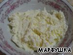 Смешиваем творожный сырок, сливочное масло и кокосовую стружку.