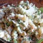Всем Привет! Итак, о салате. Попробовала его в гостях. Понравился очень. Особенно он будет по душе любителям «Оливье», «Мужского каприза», моего салатика «Капризуля», вобщем тем, кто любит сытные и вкусные салаты. Мне, например, такой салат заменил ужин. На самом деле классно. Так как я приготовила его довольно поздно вечером, у меня не было сил искать красивый ракурс. Поэтому, выложив салат, я его быстро сфоткала, и мы дружно сели и опустошили салатницу. Попробуйте и вы! Самое то, для праздничного стола! Кстати, на сайте есть рецепт с таким же названием, но он без фотографии и немного отличается от моего.