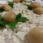 Как по мне - тоже на оливье не очень-то и похоже, вкус вообще другой. Детям особенно нравится потому что сверху грибами утыкан - вроде как полянка. Уже второй новый год делаю. Как доедим салаты - хочу сделать уже вне праздничного меню: больно уж вкусный!