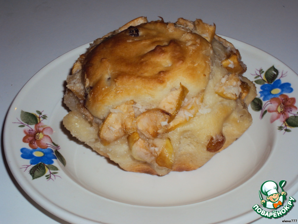 Рецепт «Дрожжевая бабка с яблоками и изюмом»: