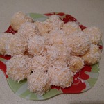 Кокосовая стружка прилипала слабовато (видимо из-за несоблюдения пропорций: мало сладости).