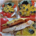 Далее выложить небольшой горочкой сырно-помидорную начинку.