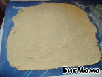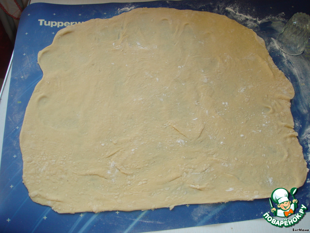 4. На присыпанной мукой рабочей поверхности раскатать как можно тоньше тесто.