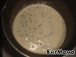 8. Помещаем в сотейник вместе со сливками. Томим на газу до растворения сыра, постоянно помешивая.