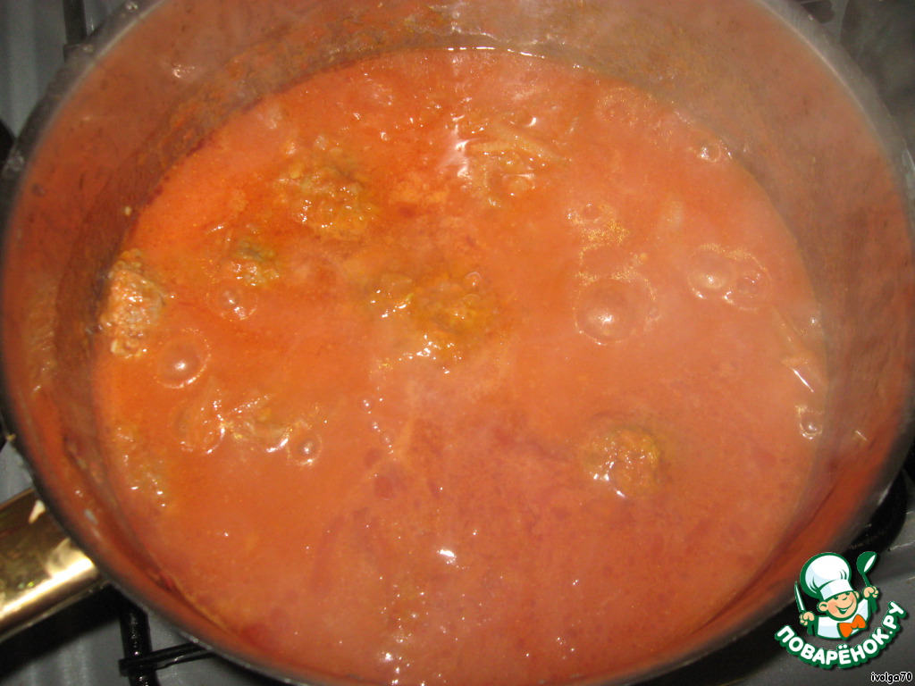 И так шаг за шагом, по кругу выкладываем куфту. Слои (немного, ложечкой) поливаем нашей подливой. Да! забыла куркуму! Она придаст нашему блюду непередаваемый оранжевый цвет!