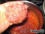 Теперь формируем мясные блинчики, хорошо их похлопываем, чтоб не развалились потом случайно, и отправляем в кастрюлю.
