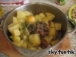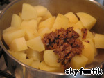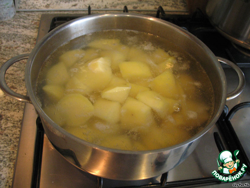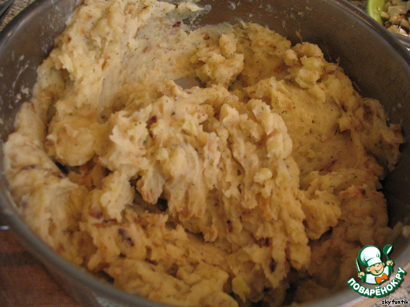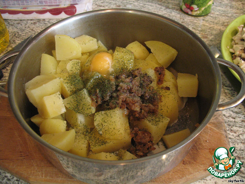 Потом перемалываем его поменьше, добавляем к вареной картошке.