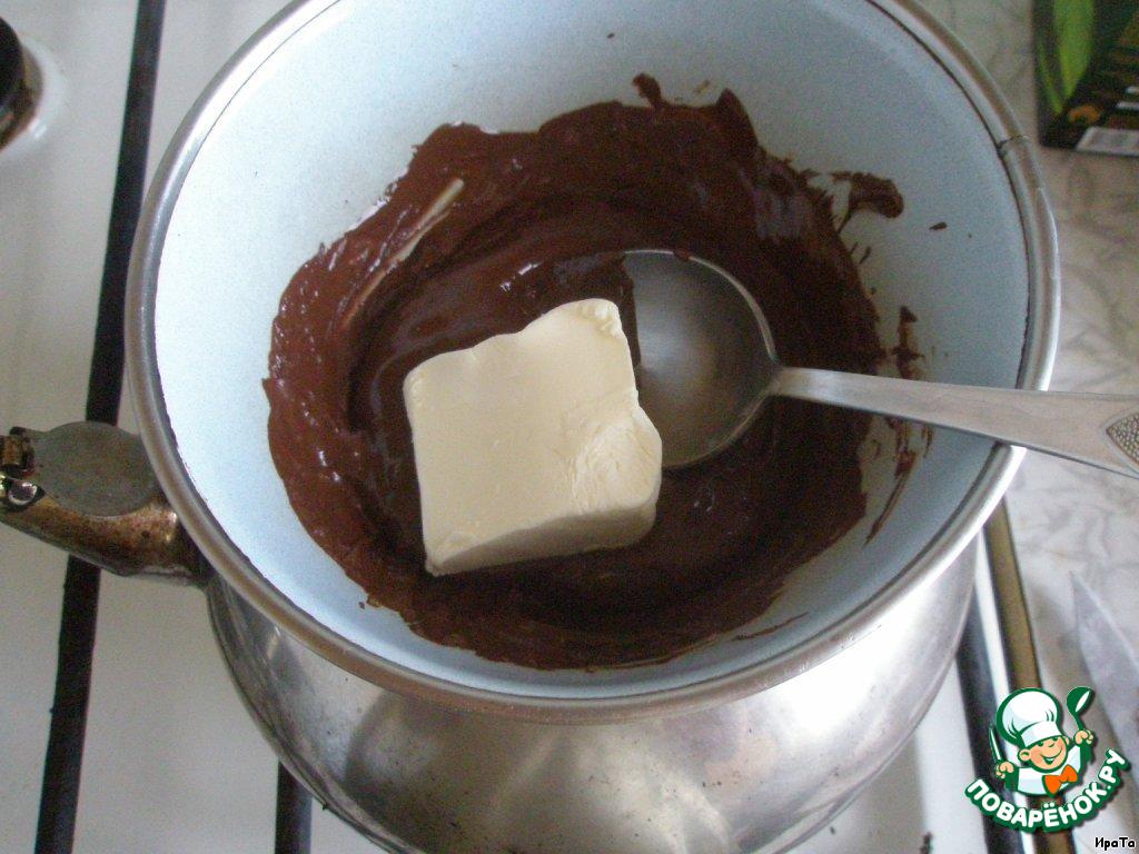 Шоколад разогреваю на пару и добавляю масло – это шоколадная глазурь.