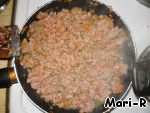 Обжариваем лук и морковь, добавляем туда фарш и готовим до полуготовности.